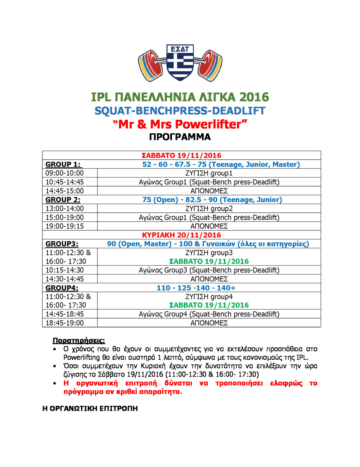 ΠΡΟΓΡΑΜΜΑ IPL ΠΑΝΕΛΛΗΝΙΑ ΛΙΓΚΑ 2016 by 13/11/2016 13/11/2016 Bookmark 773 ΚοινοποίησηΠΡΟΓΡΑΜΜΑ IPL ΠΑΝΕΛΛΗΝΙΑ ΛΙΓΚΑ 2016 previous post Το t-shirt της IPL Πανελλήνιας Λίγκας Δυναμικού Τριάθλου (single lifts) 2016 next post PHOTOS-XBODY ”ΕΣΔΤ IPL Hellenic Powerlifting League 2016”